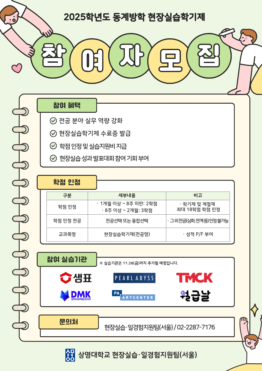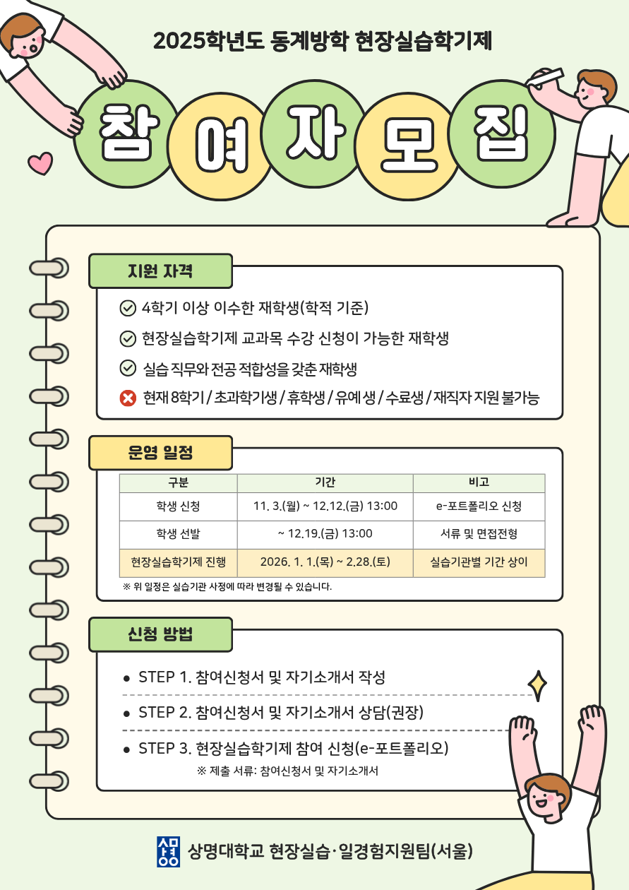 - [홍보] 2025학년도 동계방학 현장실습학기제 참여 학생 모집 안내